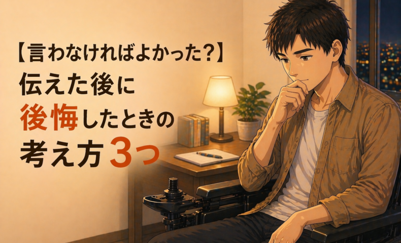 リード文「もうこれ以上言わない方がいいのかもしれない」「でも、このまま何も言わないのもしんどい」そんなふうに、“伝えるかどうか”で迷ったことはありませんか。これまで、「分かってもらえないときは自分を守ることも大切」という話をしてきました。それでもなお、「やっぱり伝えたい」と思う場面もあると思います。私自身、当事者として「言わなかった後悔…