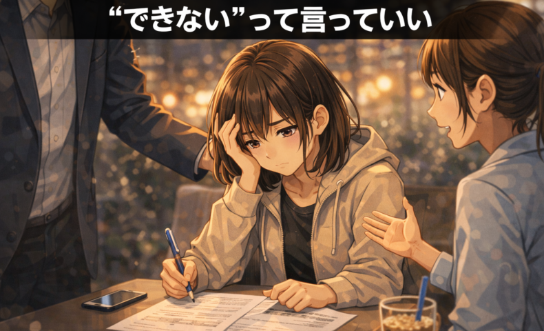 <p>「できますか?」その質問に、私はずっと「はい、大丈夫です」と答えてきました。本当はちょっと不安でも、少し体がつらくても、声がかかる前に「大丈夫です!」と笑っていた気がします。――“できない”って言ったら、負けた気がする。そんな感覚を、私はどこかでずっと抱えていました。</p>