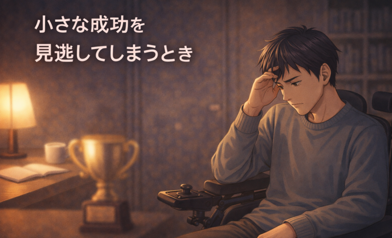 私自身も、長いあいだ「できて当たり前」「これぐらいでは成功とは呼べない」と思っていました。障害がある生活のなかで、できないことはどうしても多くなります。だからこそ「少しできたこと」に目を向けることよりも「まだできていない部分」にばかり目がいってしまうのです。そしてそれが、心の重荷になっていました。