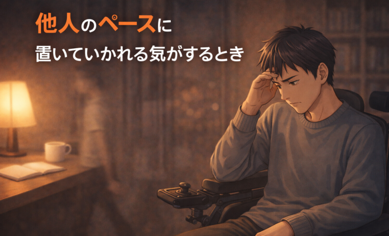 私自身も、脳性麻痺による身体の動かしにくさがあることで、「人より時間がかかる」「段取りが遅れる」ことが多々あります。頭では「自分のペースでいい」と思っていても、周りの人がスムーズに進めている様子を見ると、どうしても焦りがこみ上げてきます。ときには「迷惑をかけていないだろうか」「自分の存在が足を引っ張っているのではないか」という恐れでいっぱいになるのです。